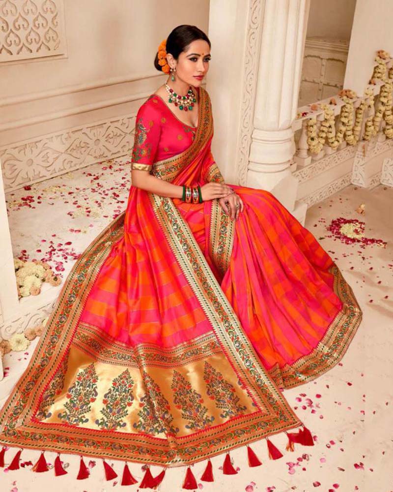 Enchant the mantra of being stylish in this attire. This Aspiring Gray Banarasi Weaving Silk Saree With Weaving Silk Work. Comes With Matching Blouse. (Slight variety in shading, Fabric and work is conceivable. Model images are only representative.)