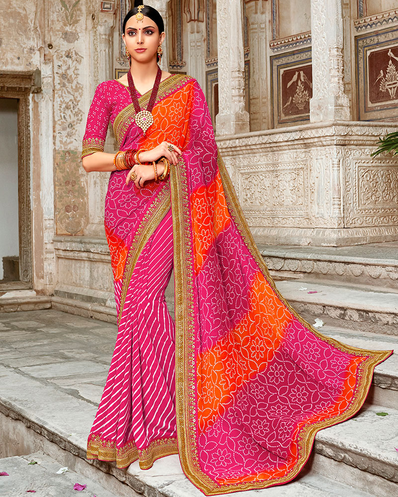 Bandhani With Heavy Border Georgette Multicolor Bandhej Saree