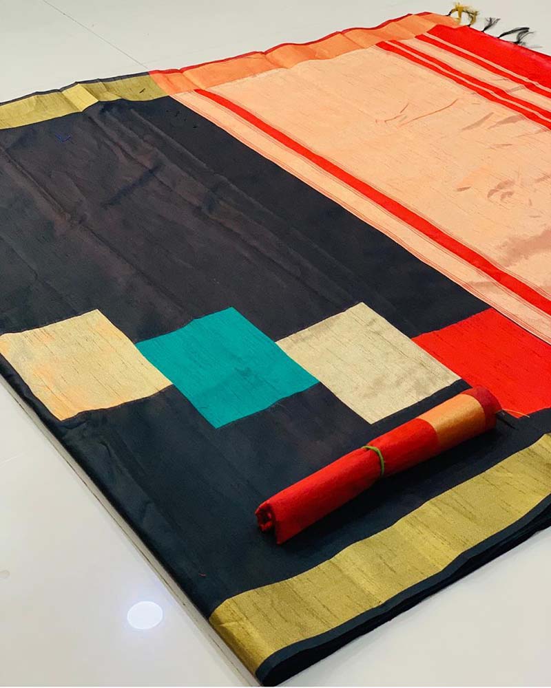 Get going with this majestic and wonderful piece and make your dream attire look richer to your persona. Add the sense of feminine beauty by this Mesmerizing Banglori Silk Sarees, Raw Silk Sarees Black Saree. Comes With Matching Blouse. (Slight variety in shading, Fabric and work is conceivable. Model images are only representative.)