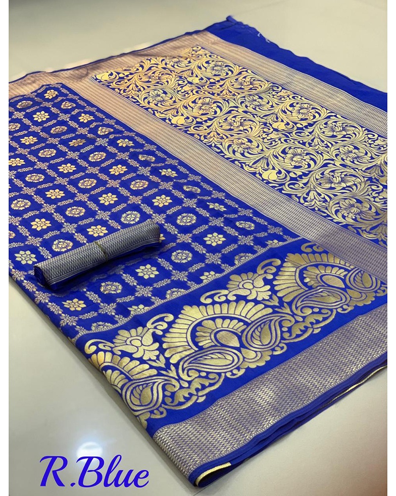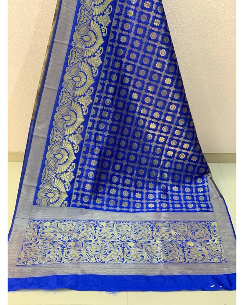 Designed With Simplicity With A Touch Of Soberness In Its Work Makes A Masterpiece. This Blue Banarasi Handloom Weaving Silk Saree With Rich Zari Pallu And Rich Heavy Border With Plain Running With Wooven Selvees Blouse And All Over Zari Weaves. Comes With Matching Blouse. (Slight variety in shading And texture and work is conceivable. Model images are only representative.)