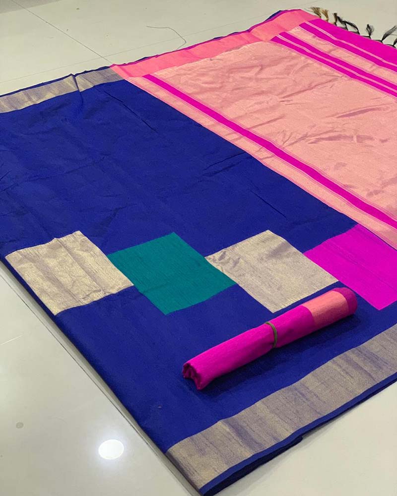 Get going with this majestic and wonderful piece and make your dream attire look richer to your persona. Keep ahead in fashion with this Attractive Banglori Silk Sarees, Raw Silk Sarees Blue Saree. Comes With Matching Blouse. (Slight variety in shading, Fabric and work is conceivable. Model images are only representative.)