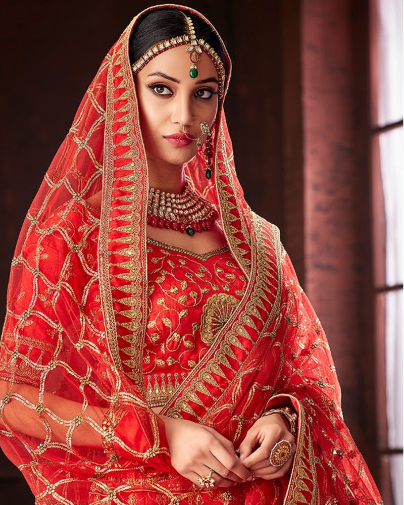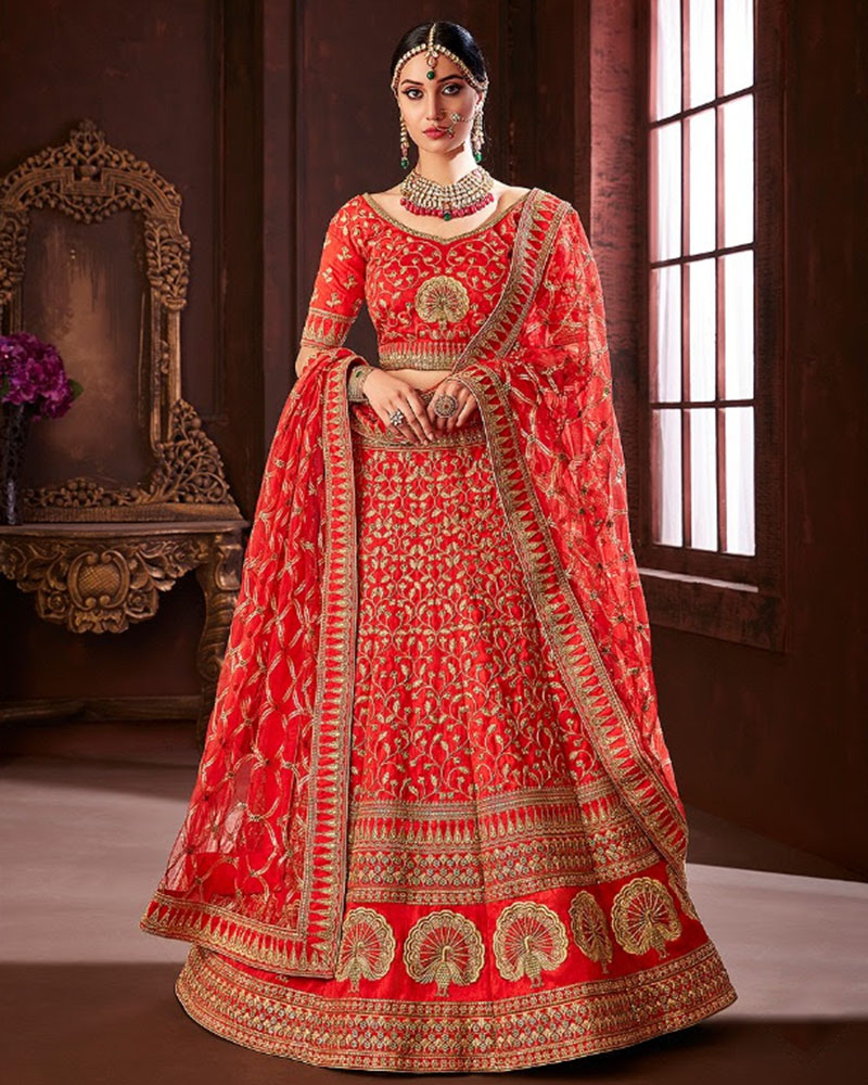 Aspiring to make a mark in the world of style. Here is the attire to breath life into your aspirations. Add a vibrant burst of color to your wardrobe with this Blue, Orange Pure Soft Silk Bridal Lehenga Choli With Traditional Heavy Embroidered, Multi Work Designer Work. Comes With Matching Choli And Dupatta. (Slight variety in shading, Fabric and work is conceivable. Model images are only representative.)