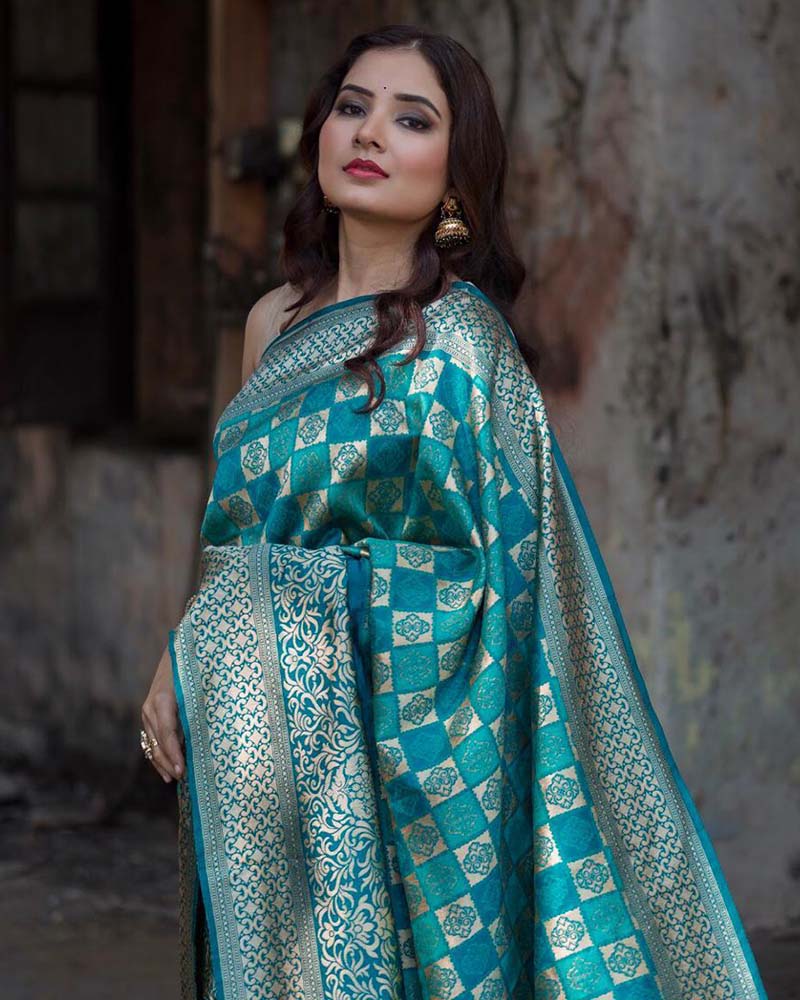 This delightful diva accoutre features unique styling and unusual material. Get the simplicity and grace with this Mod Banarasi Silk Sarees, Handloom Silk Sarees, Weaving Silk Sarees Blue Saree. Comes With Matching Blouse. (Slight variety in shading, Fabric and work is conceivable. Model images are only representative.)