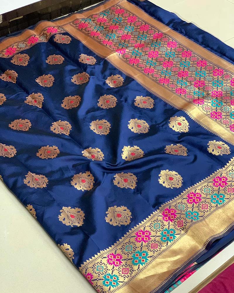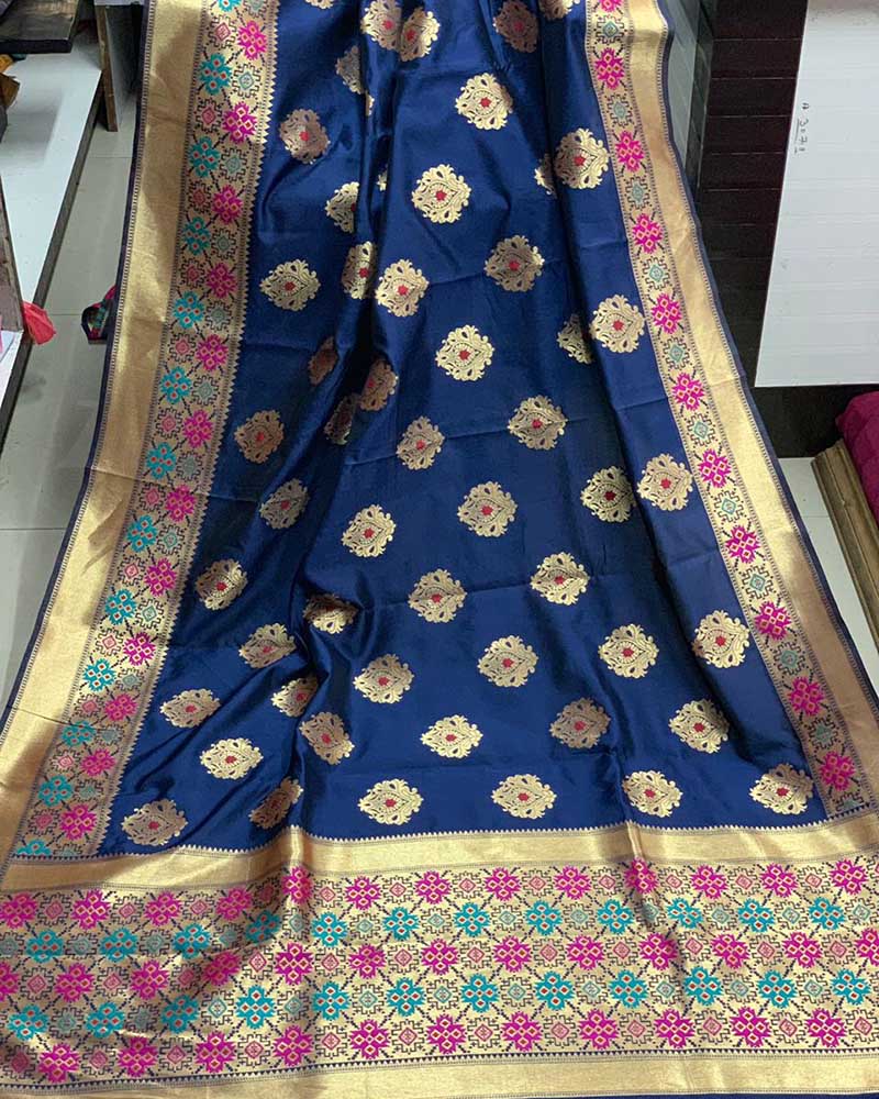 You will be the center of attention in this attire. This Sightly Banarasi Silk Sarees, Silk Sarees Blue Saree. Comes With Matching Blouse. (Slight variety in shading, Fabric and work is conceivable. Model images are only representative.)