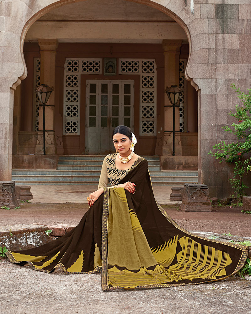 Fashion And Trend Will Be At The Peak Of Your Splendor Once You Attire This Lovely Brown Brasso Saree With Designer Raw Silk Blouse. Comes With Matching Blouse. (Slight variety in shading, texture and work is conceivable. Model images are only representative.)