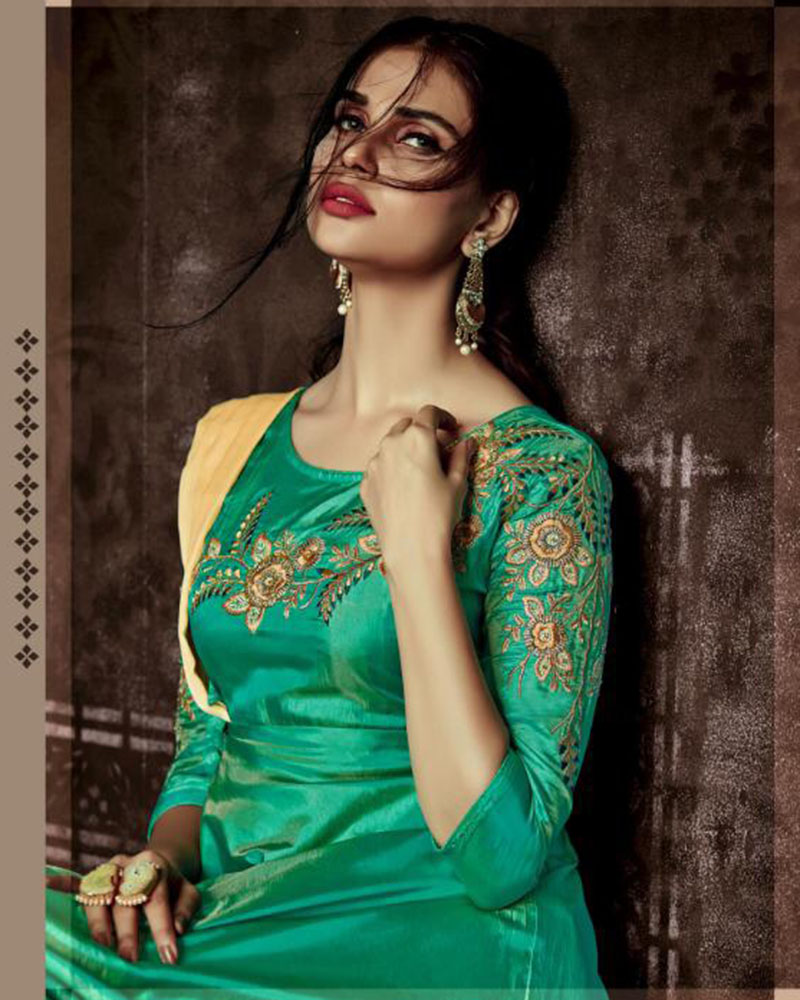 You look so charming wearing this attire. Style and trend will be at the peak of your beauty when you attire this Designer Tapeta Silk Turquoise Gown. (Slight variety in shading, texture and work is conceivable. Model images are only representative.)