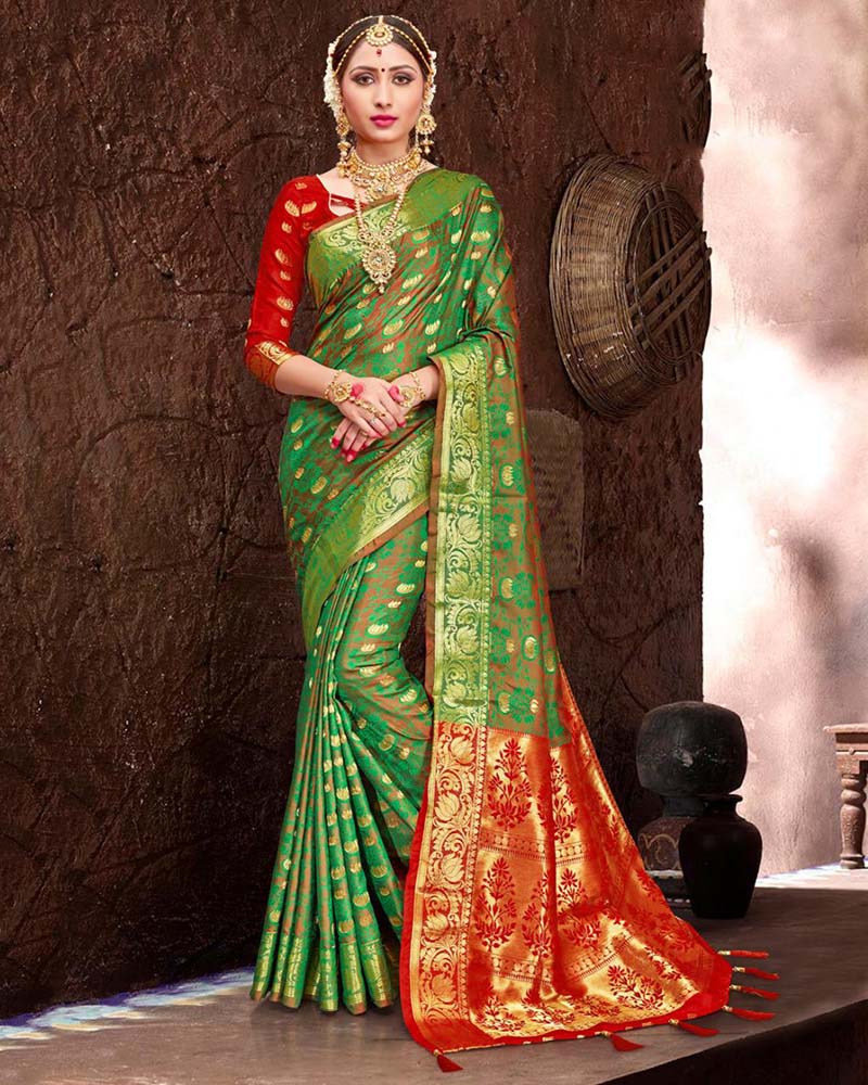 Fashion and trend will be on the peak of your attractiveness as soon as you dresses this Fashionable Green Patola Silk Saree With Weaving Silk Work. Comes With Matching Blouse. (Slight variety in shading, Fabric and work is conceivable. Model images are only representative.)