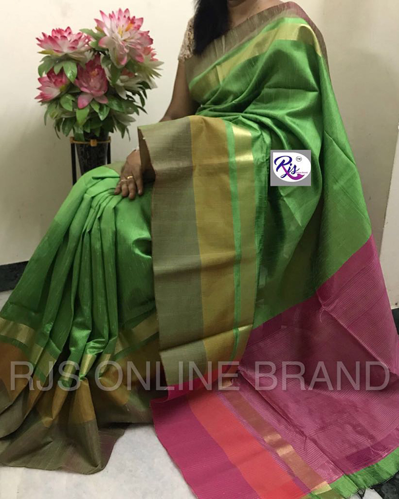 Be An Angel And Create And Ascertain A Smashing Effect On Every Single Person By Carrying This Green Khadi Cotton Silk Saree With Contrast Pallu With Royal Tassels And Contrast Blouse. Comes With Matching Blouse. (Slight variety in shading And texture and work is conceivable. Model images are only representative.)