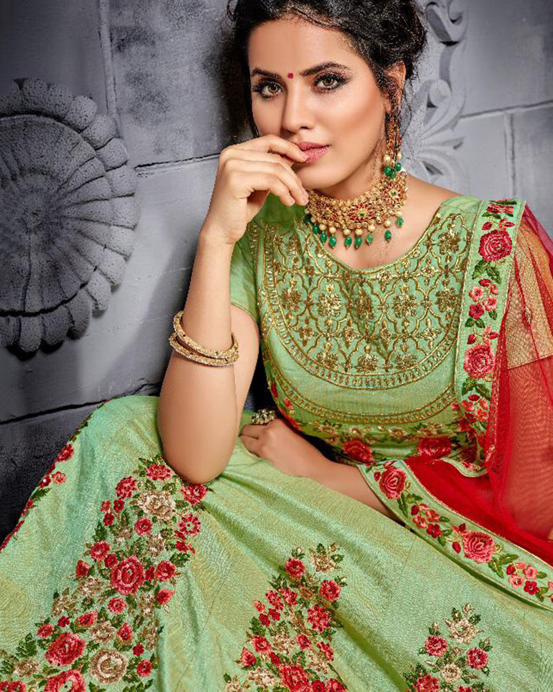 Be an angel and create and ascertain a smashing impact on everybody by carrying this? Green Silk Bridal Lehenga Choli With Traditional Heavy Embroidered, Multi Work Designer Work. Comes With Matching Choli And Dupatta. (Slight variety in shading, Fabric and work is conceivable. Model images are only representative.)