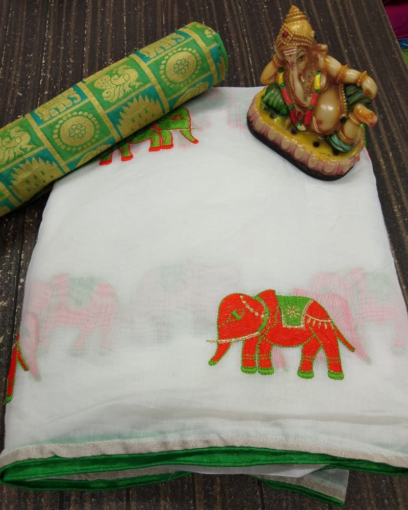 Make The Heads Flip The Moment You Costume Up With This Delightsome White Heavy Chanderi Saree With Embroidered Work. (Slight variety in shading, texture and work is conceivable. Model images are only representative.)