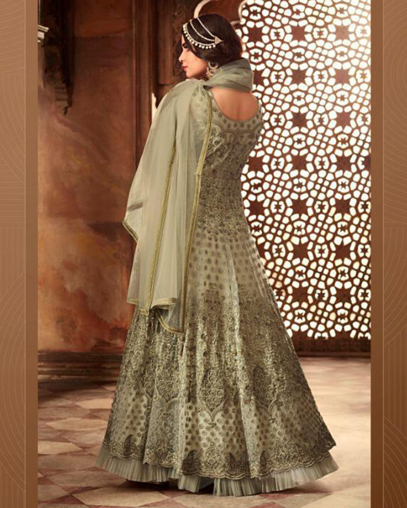 Make the heads flip the moment you dress up in this sort of a gorgeous Cute Anarkali Style Net Light Green Embroidered Salwar Kameez With Embroidered Work.. Comes With Matching Bottom And Dupatta. (Slight variety in shading, Fabric and work is conceivable. Model images are only representative.)