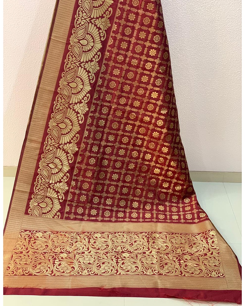 Maroon Banarasi Handloom Weaving Silk saree