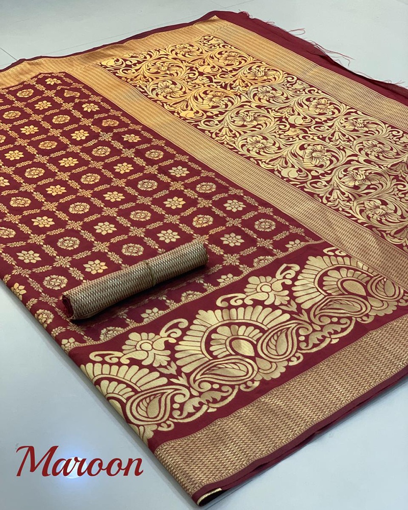 Style And Pattern Would Be On The Peak Of Your Elegance After You Dresses This Maroon Banarasi Handloom Weaving Silk Saree With Rich Zari Pallu And Rich Heavy Border With Plain Running With Wooven Selvees Blouse And All Over Zari Weaves. Comes With Matching Blouse. (Slight variety in shading And texture and work is conceivable. Model images are only representative.)