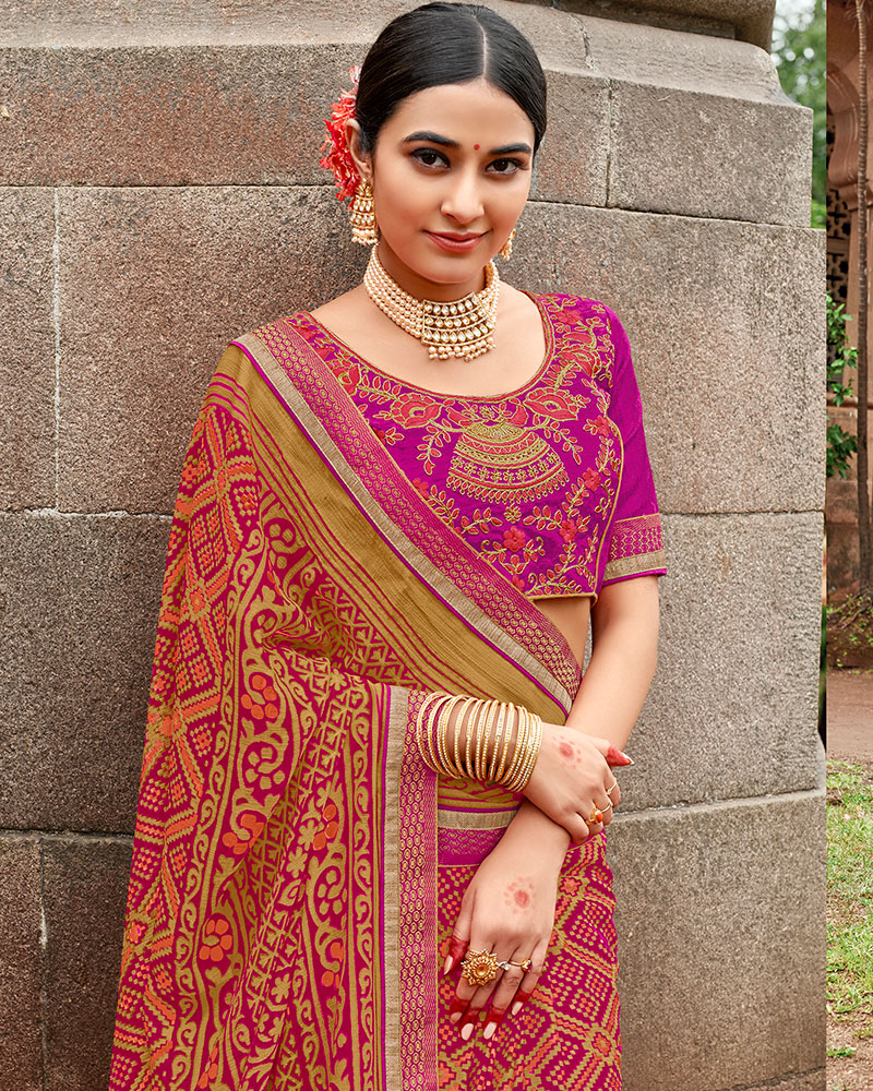 Multicolor Brasso Saree With Designer Raw Silk Blouse