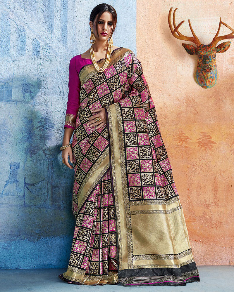 Multicolor Flower Pattern Silk Saree