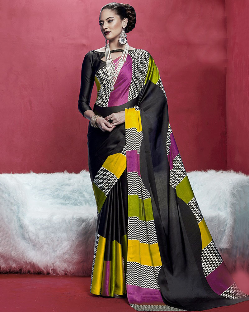 Be the first to review “Multicolor Printed Japan Satin Crepe Saree”