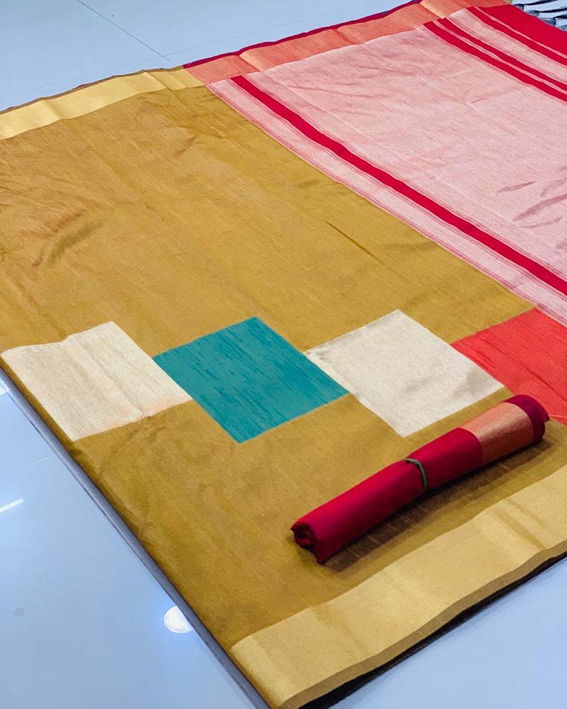 We have ensemble a symphony of enchanting piece to restyle your senses. Make an adorable statement in such a smashy Invigorating Banglori Silk Sarees, Raw Silk Sarees Mustard Saree. Comes With Matching Blouse. (Slight variety in shading, Fabric and work is conceivable. Model images are only representative.)