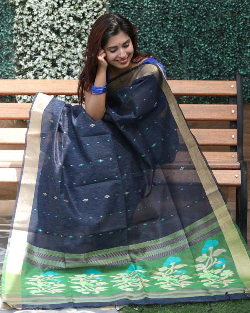 Authentic magnificence can come out of your dressing trend with this Pretty Linen Sarees Navy Saree. Comes With Matching Blouse. (Slight variety in shading, Fabric and work is conceivable. Model images are only representative.)