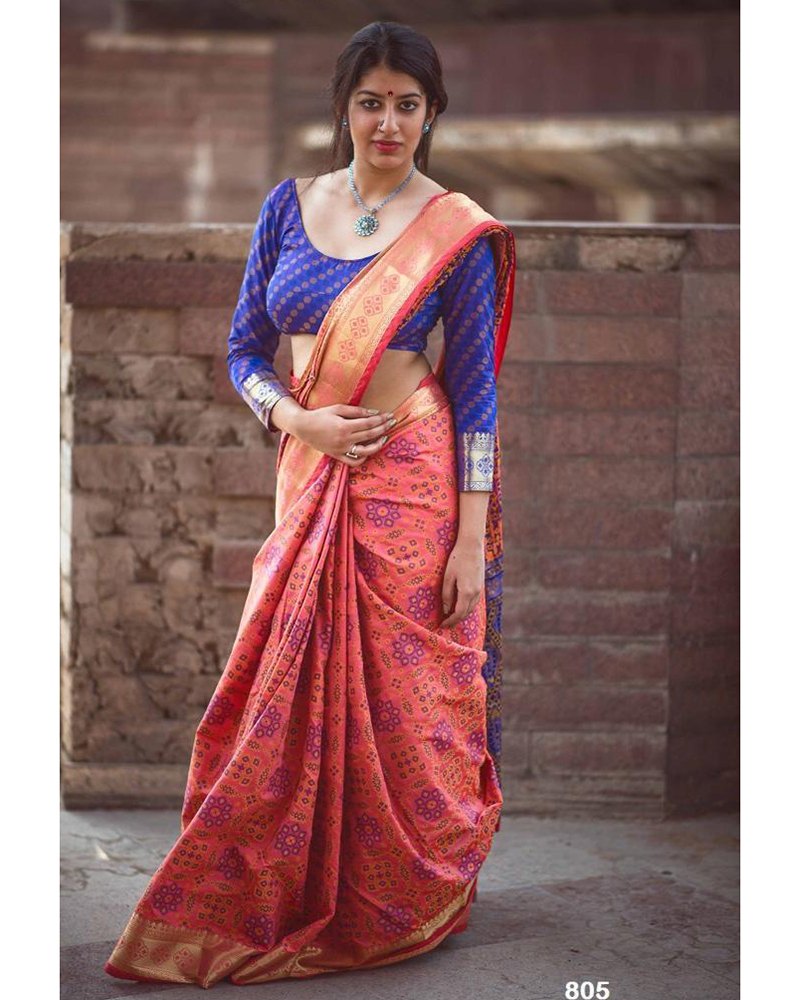 Fashion And Style Always Depends On Good Color And Fantastic Combination Of Shades And So We Create Best Shades To Enhance Your Beauty And Personality. Steal The Hearts Away With This Peach Banarasi Soft Handloom Weaving Patola Saree With Contrast Pallu With Zari Wooven Border And Blouse As In Images (WITHOUT JHALAR). Comes With Matching Blouse. (Slight variety in shading And texture and work is conceivable. Model images are only representative.)