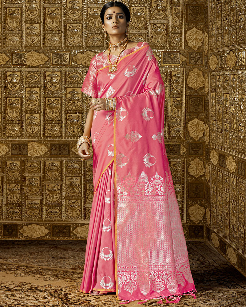 Sensible colors and excellent designs and romantic moods are reflected with an alluring style. Steal the hearts away with this Staggering Peach Silk Trendy Saree With Weaving Work. Comes With Matching Blouse. (Slight variety in shading, Fabric and work is conceivable. Model images are only representative.)