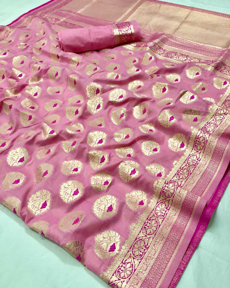 Everyone will admire you when you wear this clad to elegant affairs. Women beauty is magnified tenfold in this Ruritanian Pink Cotton Silk Traditional Saree. Comes With Matching Blouse. (Slight variety in shading, Fabric and work is conceivable. Model images are only representative.)