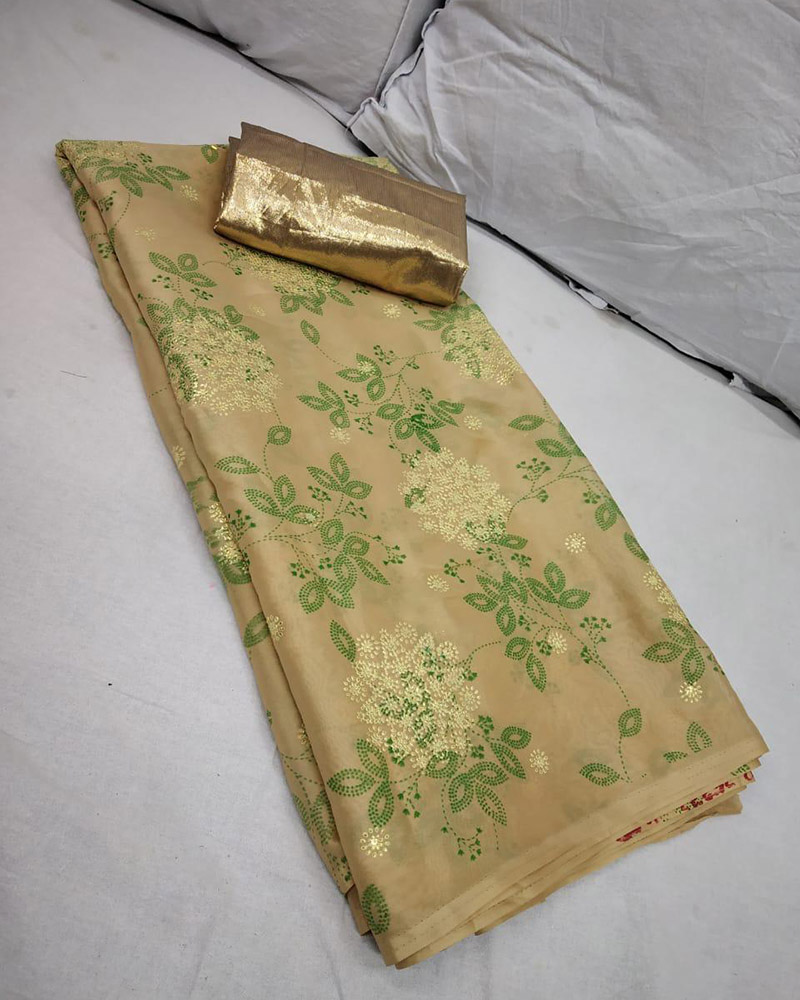 Precise Attractiveness Will Come Out Through The Dressing Trend With This Exceptional Beige Rangoli Silk Saree With Floral Print Work. (Slight variety in shading, texture and work is conceivable. Model images are only representative.)