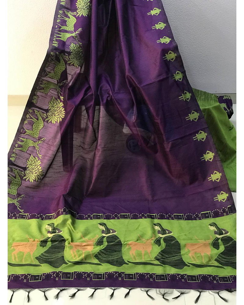 Design And Trend Could Be On The Peak Of Your Splendor After You Attire This Purple Banglori Raw Silk Saree With Kalamkari Wooven Pallu With Royal Tassels And Kalamkari Wooven Border With Plain Contrast Blouse. Comes With Matching Blouse. (Slight variety in shading And texture and work is conceivable. Model images are only representative.)