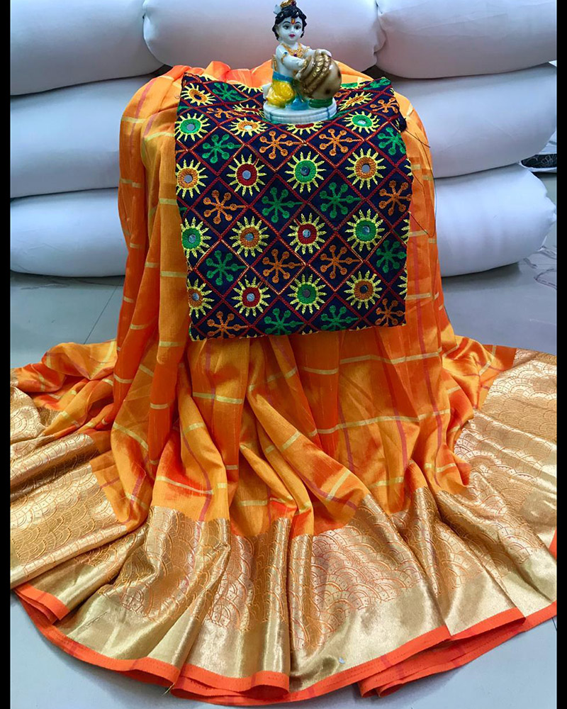 Make The Heads Turn Whenever You Costume Up In Such A Attractive Orange Sana Silk Saree Golden Zari Border. (Slight variety in shading, texture and work is conceivable. Model images are only representative.)