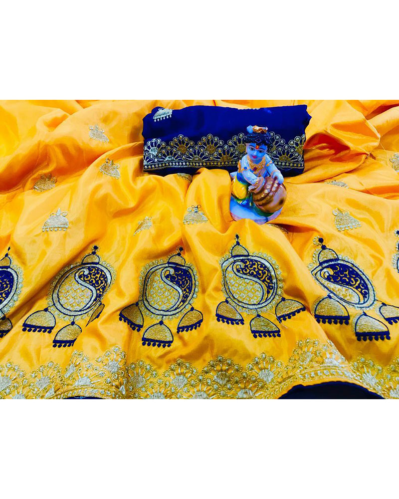 Design And Trend Could Be On The Peak Of Your Splendor After You Attire This Tantalizing Yellow Sana Silk Saree Embroidered. (Slight variety in shading, texture and work is conceivable. Model images are only representative.)