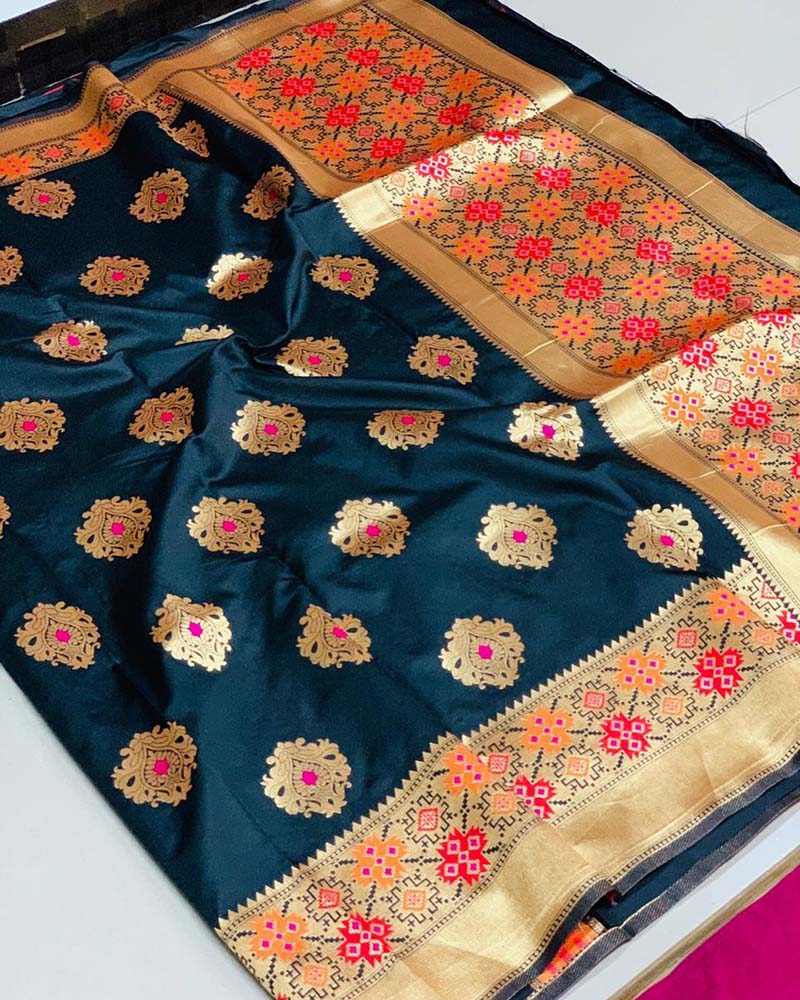Everyone will admire you when you wear this clad to elegant affairs. Women beauty is magnified tenfold in this Ruritanian Banarasi Silk Sarees, Silk Sarees Sea Blue Saree. Comes With Matching Blouse. (Slight variety in shading, Fabric and work is conceivable. Model images are only representative.)