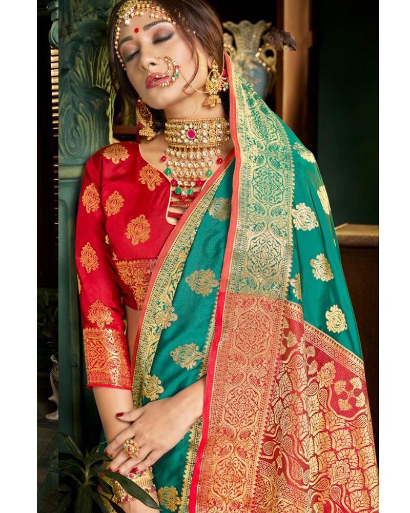 Rich Look Attire To Give Your A Right Choice For Any Party Or Function. Look Ethnic In This Sea Green Banarasi Paithani Silk Saree With Rich Zari Contrast Pallu WITHOUT TASSELS With Zari Wooven Border With Contrast Blouse. Comes With Matching Blouse. (Slight variety in shading And texture and work is conceivable. Model images are only representative.)