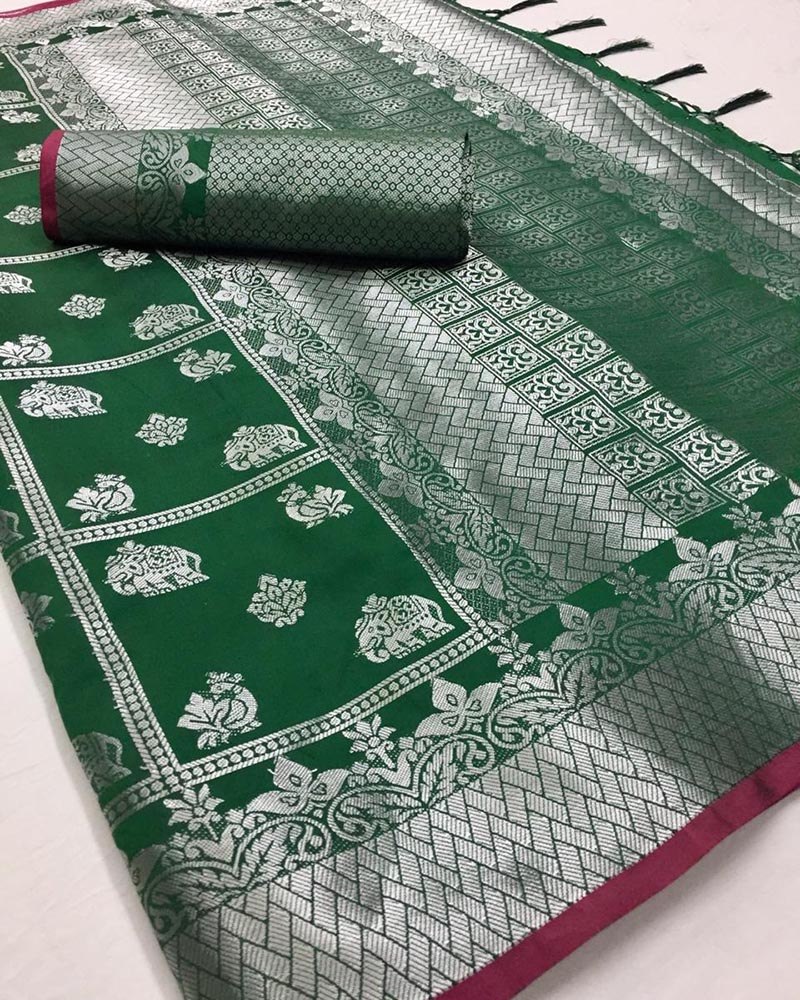 You will be the center of attention in this attire. This Sightly Magenta Silk Saree With Weaving Silk Work. Comes With Matching Blouse. (Slight variety in shading, Fabric and work is conceivable. Model images are only representative.)