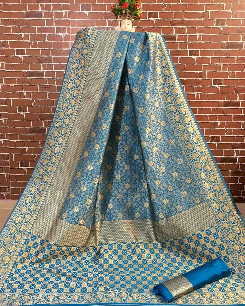 Get going with this majestic and wonderful piece and make your dream attire look richer to your persona. Keep ahead in fashion with this Attractive Banarasi Silk Sarees, Handloom Silk Sarees, Weaving Silk Sarees Sky Blue Saree. Comes With Matching Blouse. (Slight variety in shading, Fabric and work is conceivable. Model images are only representative.)