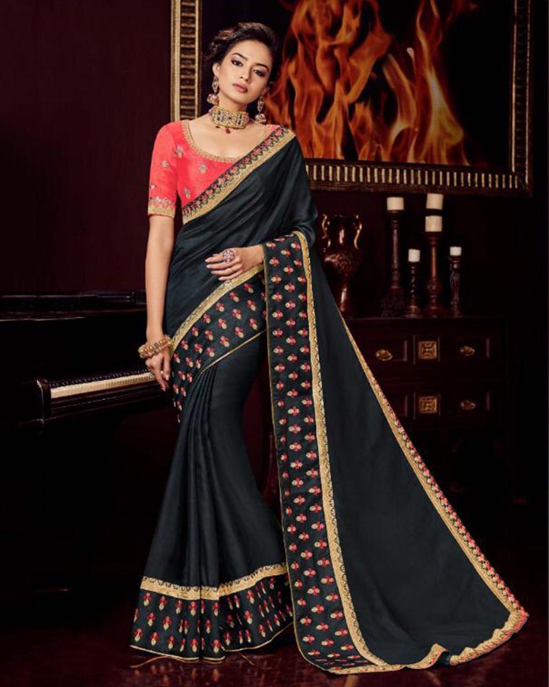 Be an angel and create and establish a smashing impact on for every person by carrying this Topnotch Sea Green Cadbury Silk Saree With Embroidered Border Work. Comes With Matching Blouse. (Slight variety in shading, Fabric and work is conceivable. Model images are only representative.)