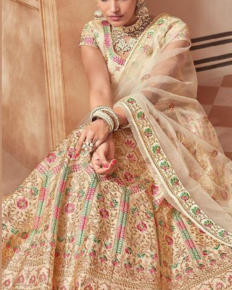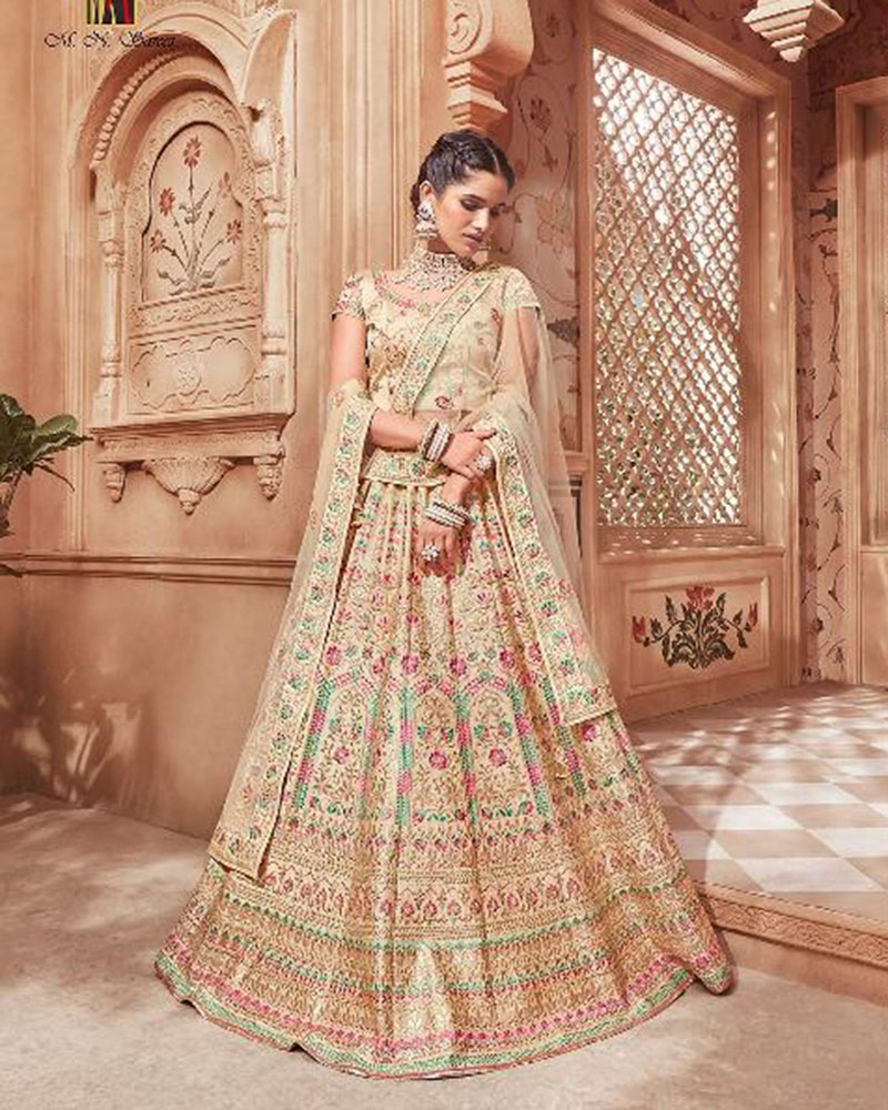 Yellow Pure Satin And Lucknowi Bridal Lehenga Choli